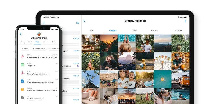 On the Images tab, you’re shown all images that they’ve sent your way so you never have to dig through your inbox to search for them. The Files tab shows all the files that have been sent your way, and you’re even able to narrow the files down by Documents, PDFs, Presentations, Spreadsheets, and more.
